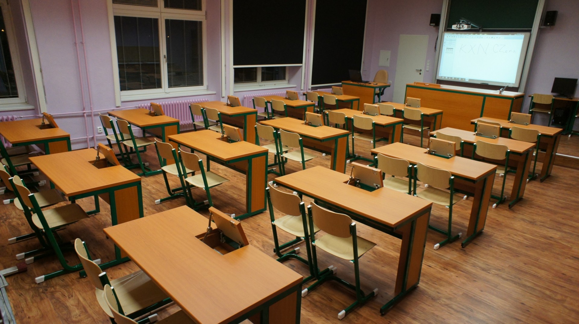 Vyjímkou vybavení učebny fyziky není ani interaktivní displej vestavěný do sestavy s tabulí a další vybavení.